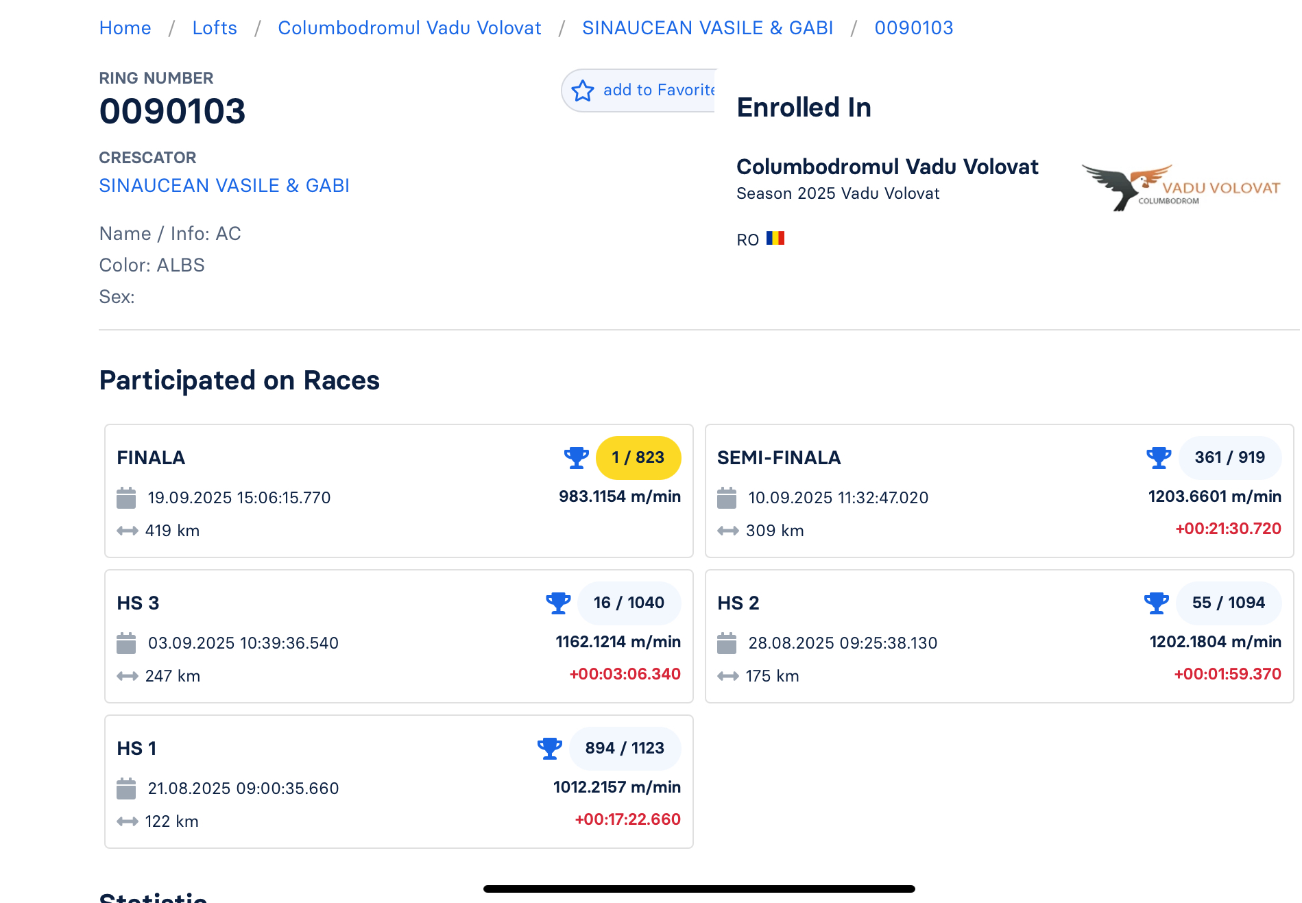 Loc 3 Finala 430 km OLR Romania Golden Pigeon 2020